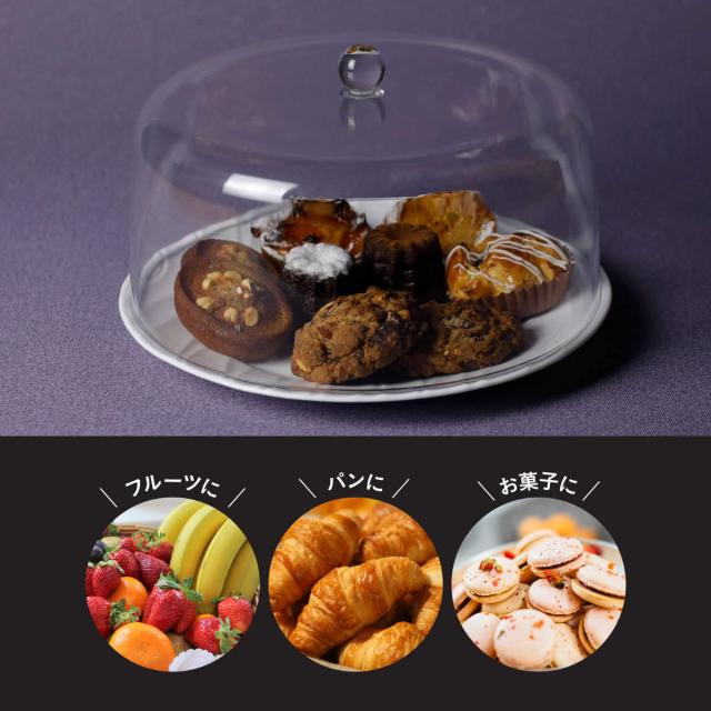 ドームフタは、お皿に被せればフルーツやパン、お菓子などの一時的な保管ケースとしても最適です。気軽に使えて湿気やほこりなどから食べ物を守ってくれます。