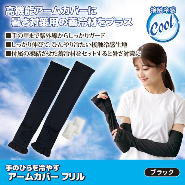 メール便 送料無料 アームカバー レディース 手のひらを冷やすアームカバー フリル ブラック 日焼け 防止 UVカット 接触冷感 8134291