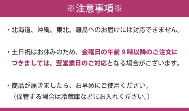 土日祝はお休みのため、金曜日の午前9時以降のご注文につきましては翌営業日のご対応になる場合がございます。