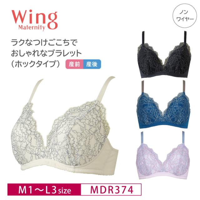【ウイングマタニティ】wing Maternity ウイング マタニティノンワイヤーブラ ブラレット ホックタイプ ワコール Wacoal 産前産後兼用 (M・Lサイズ) MDR374
