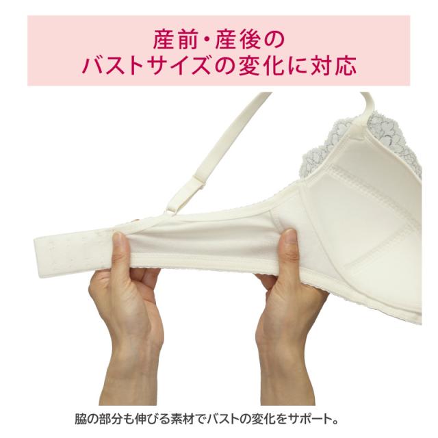 | 詳細 | 【産前産後兼用】 Hカップまで対応。産前・産後兼用 ブラレット マタニティノンワイヤーブラ ラクなつけごこちでおしゃれなブラレット(ホックタイプ) ●産前・産後のバストサイズの変化に対応 伸びのよいカップ設計で、1カップ程度の増量まで対応 ●バストの高さ方向にも対応できるサイズ設計 サイズが豊富なので、ご自身のからだに合ったサイズが見つけやすく、選びやすくなっています ●産前・産後のアンダーバストの変化に対応 ホック2段4調節でのアンダーバストの調整可能 ●大人っぽさと可愛らしさを表現したレース柄 やさしい印象のツートンレ−ス ・3/4カップ ・ノンワイヤー |