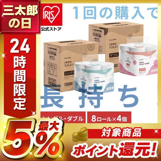 トイレットペーパー 2倍巻き(4個セット)トイレットペーパー 芯あり8ロール 全2種類 ダブル シングル 長持ち トイレットロール 家庭紙 ペーパー 紙 2倍巻き