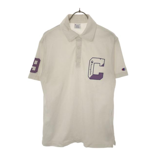 チャンピオン ロゴプリント 半袖 ポロシャツ M ホワイト Champion 鹿の子地 メンズ