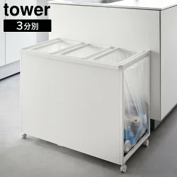 MM1 目隠し分別ダストワゴン タワー 45L 3分別 山崎実業 tower ホワイト ブラック 1826 1827 ダストボックス ゴミ箱 ごみ箱 分別 キャスター付き 45リットル 分別できるゴミ箱 目隠し おしゃれ シンプル yamazaki タワーシリーズ 送料無料