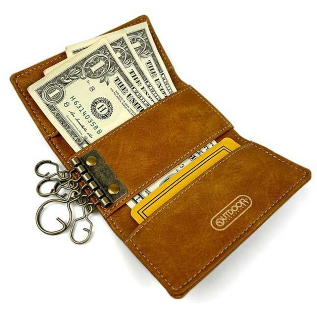 キーリングが大1個と小4個付きで、なんとお札も入る優れもの。