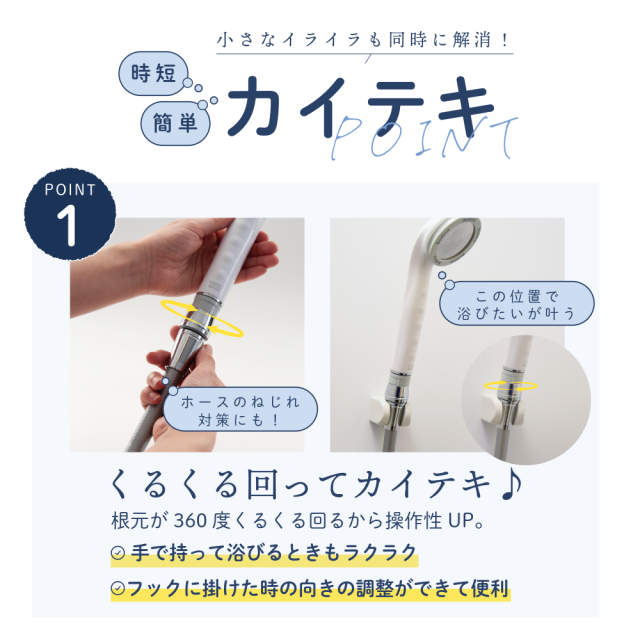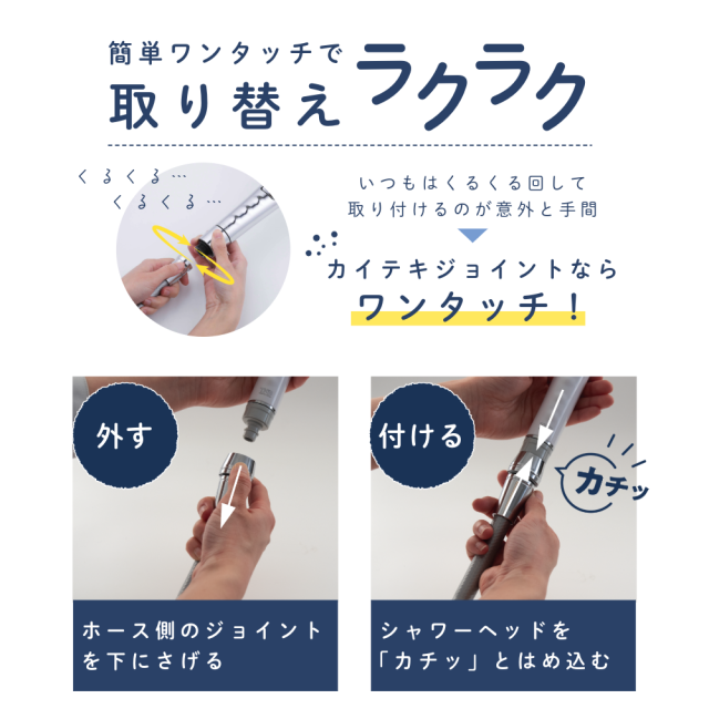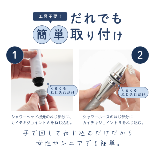 カイテキジョイント TK-T001 シャワーヘッド シャワー部品 交換 着脱 ワンタッチ 向き 固定 方向 調整 ホース ねじれ TKS 工具不要 シャワー用品 便利グッズ 浴室 シャワー バスグッズ 最大3本 お風呂 シャワー用パーツ