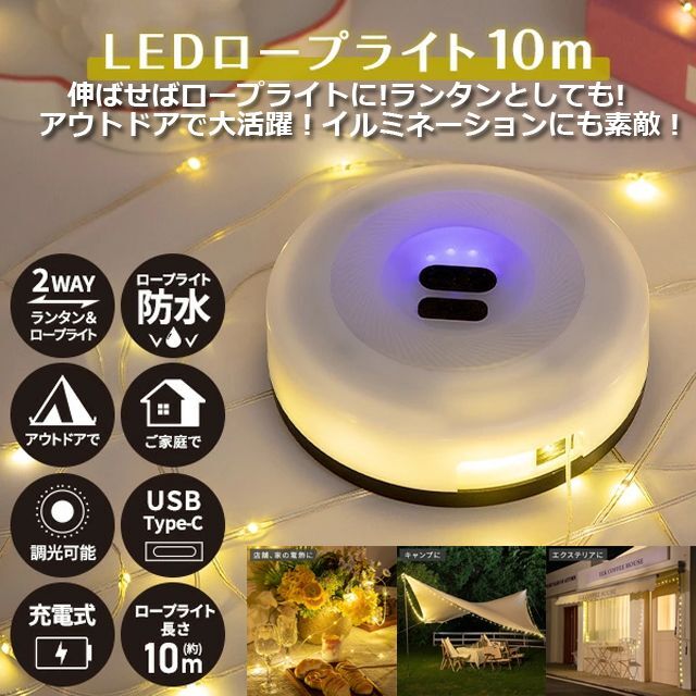 キャンプ アウトドア 充電式 LEDロープライト10m (充電式 LED ロープライト ランタン イルミネーション 10m USB)バーベキュー 夏休み