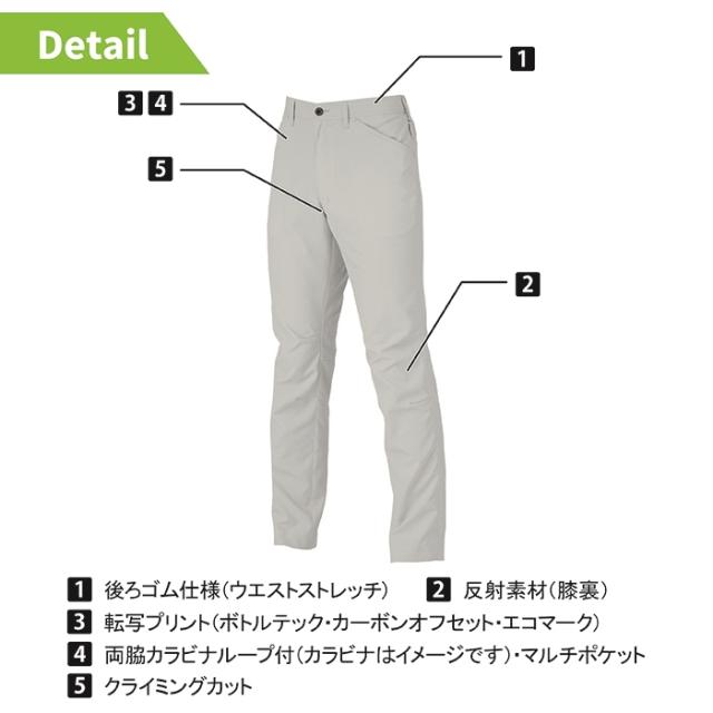 ◇機能:後ゴム仕様(ウエストストレッチ)・両脇カラビナループ付・マルチポケット・ヨコ伸び10%・反射素材(膝裏)・クライミングカット