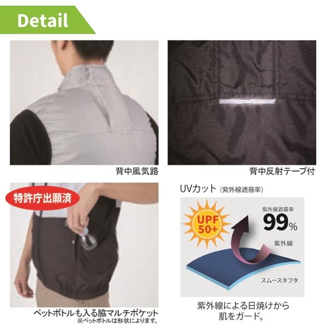 ◇機能:衿台メッシュ・背中反射テープ付・両脇ポケット(コードホール付)・背中風気路・ペットボトルも入る脇マルチポケット・裾ずり上がり防止ループ