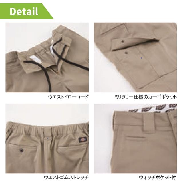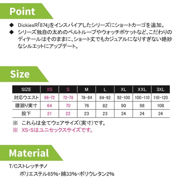 ディッキーズ Dickies 作業服 作業着 作業ズボン 春夏用 D-2876 T/Cストレッチショートカーゴパンツ XS-3XL