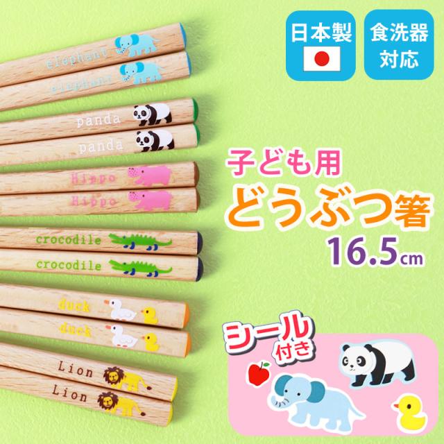 お箸 こども 16.5cm おはし 木製 子供 シール付き おしゃれ かわいい 動物 どうぶつ 子供箸 子供用 キッズ 子ども 天然木 カトラリー ゾウ パンダ カバ ライオン アヒル ワニ すべり止め加工 つかみやすい 男の子 女の子 カトラリー 四角箸