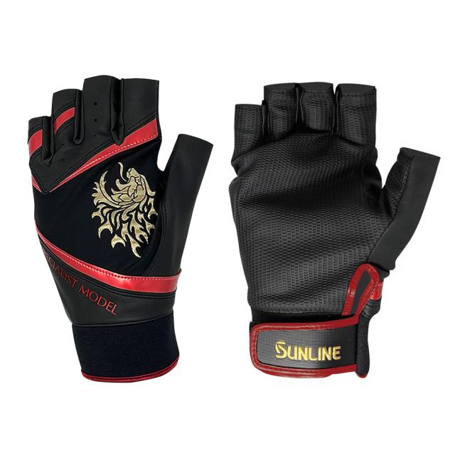 サンライン スペシャリストグローブ(5本) ブラック×レッド SUG-200 (フィッシンググローブ 釣り)