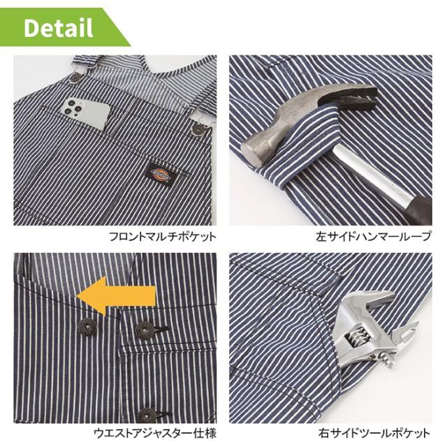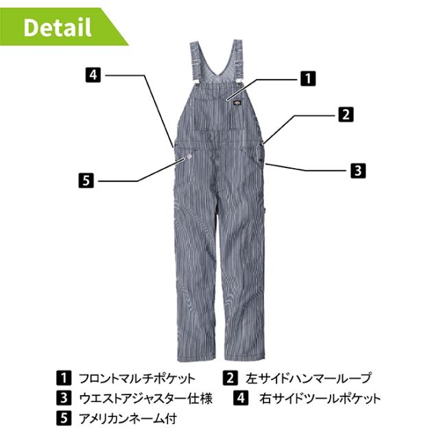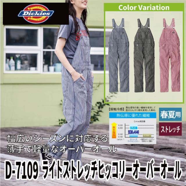 ディッキーズ Dickies 作業服 作業着 春夏用 D-7109 ライトストレッチヒッコリーオーバーオール XS-3XL