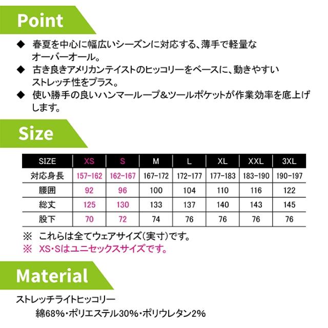【D-7109 ライトストレッチヒッコリーオーバーオール】