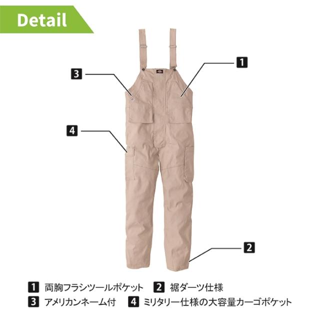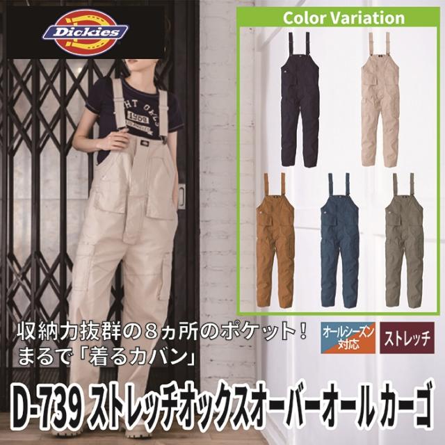 ディッキーズ Dickies 作業服 作業着 オールシーズン D-739 ストレッチオックスオーバーオールカーゴ XS-3XL