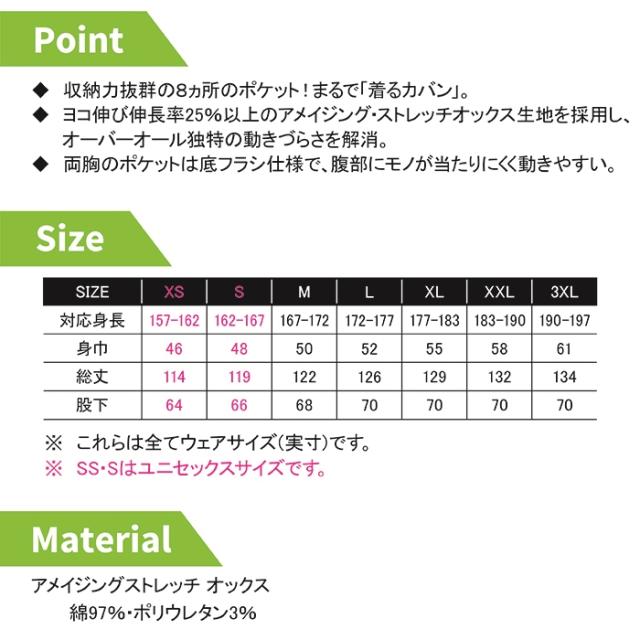 ◇ヨコ伸び伸長率25%以上のアメイジング・ストレッチオックス生地を使用し オーバーオール特有の動きづらさを解消