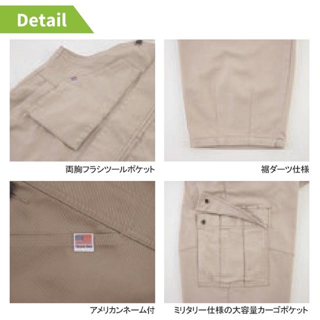 ◇機能:ミリタリー仕様の大容量カーゴポケット・裾ダーツ仕様・両胸フラシツールポケット
