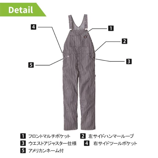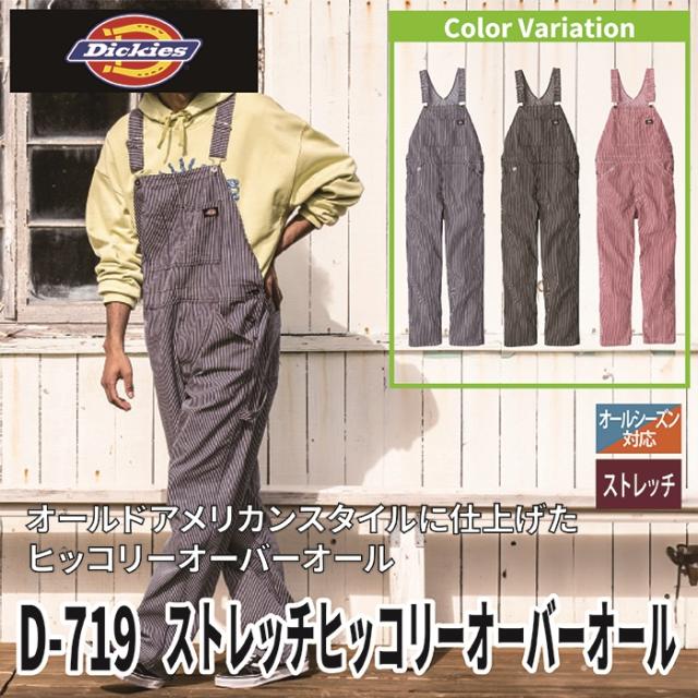 ディッキーズ Dickies 作業服 作業着 オールシーズンズ D-719 ストレッチヒッコリーオーバーオール XS-3XL