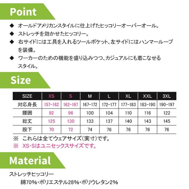 【D-719 ストレッチヒッコリーオーバーオール】