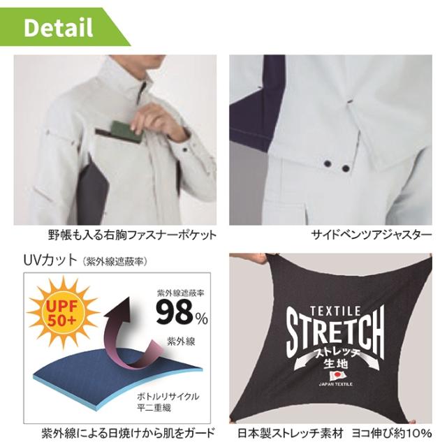 ◇機能:野帳も入る右胸ファスナーポケット・サイドベンツアジャスター・両袖マルチポケット・タブレットも入る左内ポケット・ヨコ伸び10%・反射素材(背中)