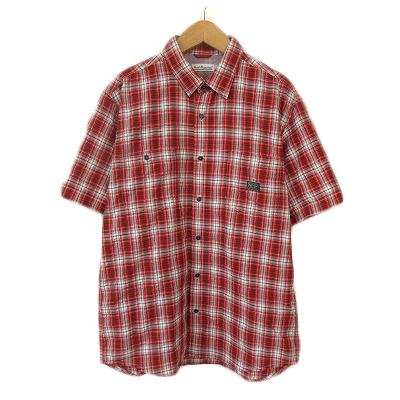 【中古】ハッシュパピー Hush Puppies シャツ チェック シアサッカー 半袖 L 赤 レッド メンズ