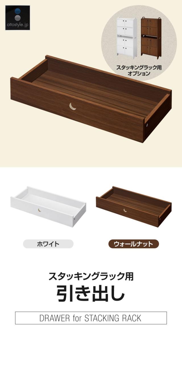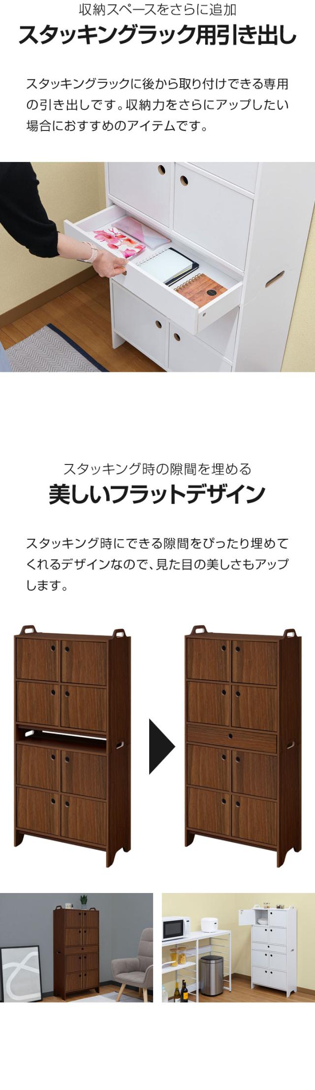 スタッキングラック用 引き出し 木目調 追加 1段 単品 スタッキングラック専用オプション スタッキングキャビネット シェルフ リビングボード ローチェスト チェスト 北欧 ※引き出しのみ、スタッキングラック本体別売 1年保証 送料無料