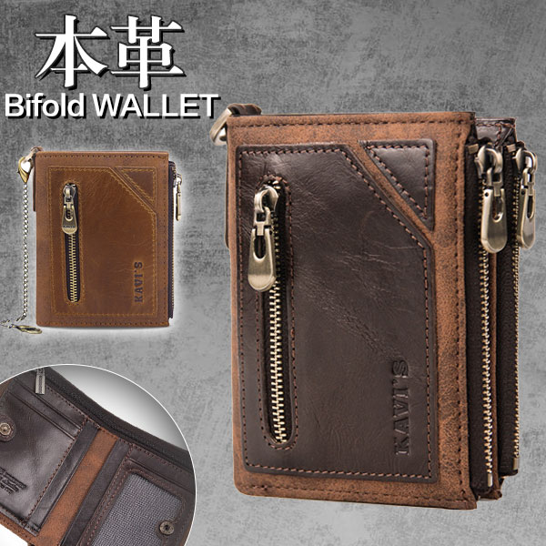 メンズ向け本革製二つ折り財布。