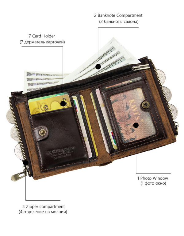 ファスナーポケットは、より多くのカードやコインを収納できます。