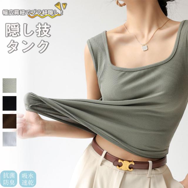 ポイント超超祭 タンクトップ レディース チラ見え防止 無地 インナー トップス ノースリーブ キャミソール 綿 ブラ紐隠し 透けにくい ゆったり レイヤード