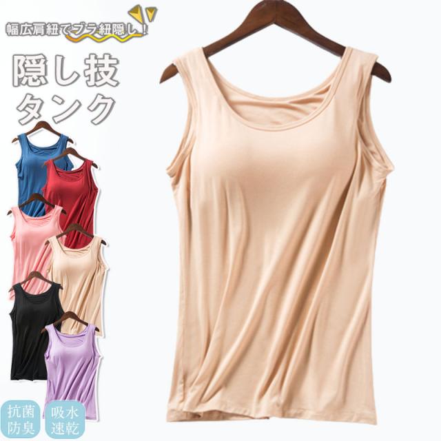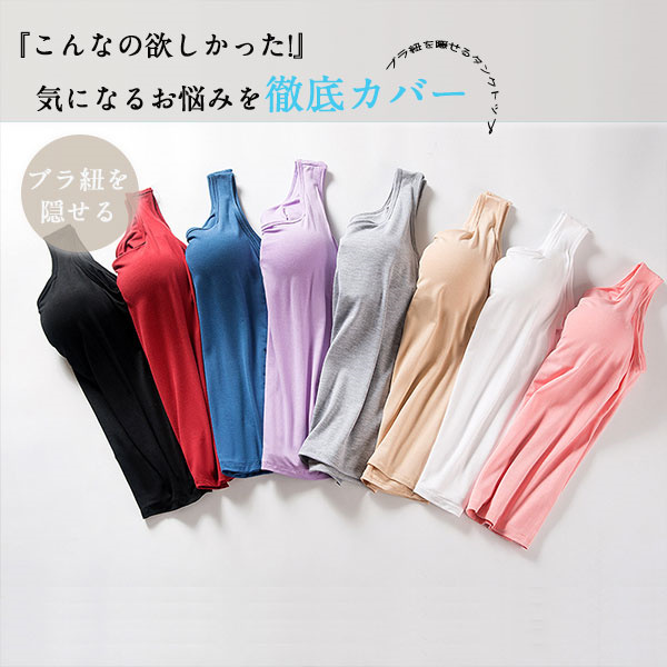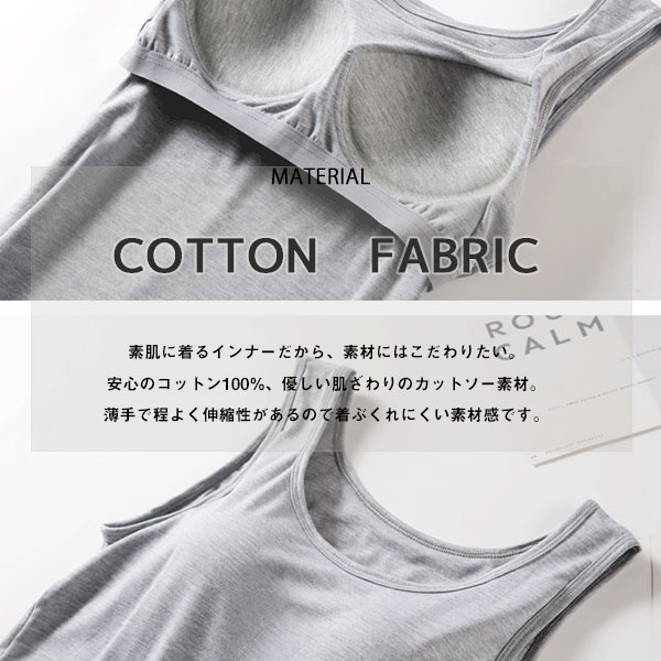 タンクトップ インナー カップ付き 無地 レディース 綿 ブラ紐隠し ロング丈 ノースリーブ 重ね着 カットソー トップス シンプル 安心感 肌触り