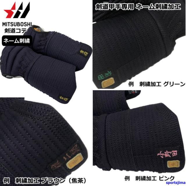 ミツボシ 刺繍加工 剣道 コテ 専用ネーム刺繍 ししゅう 小手 刺繍 甲手 行書 縫い付け きれい かっこいい 両手 ネーム 名前 名字