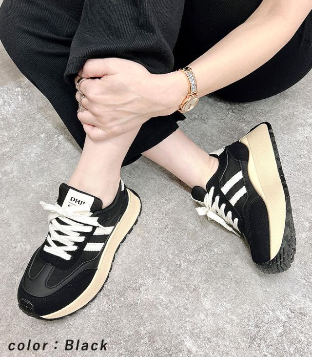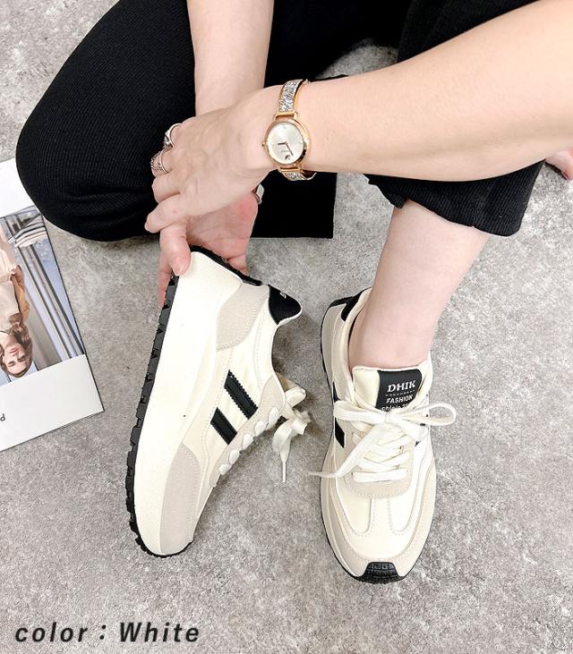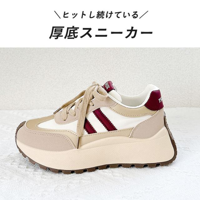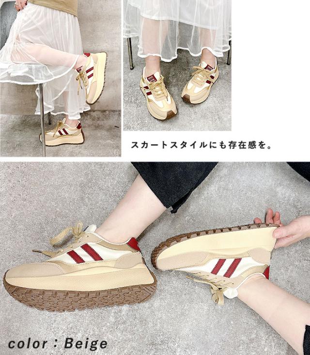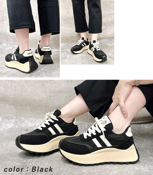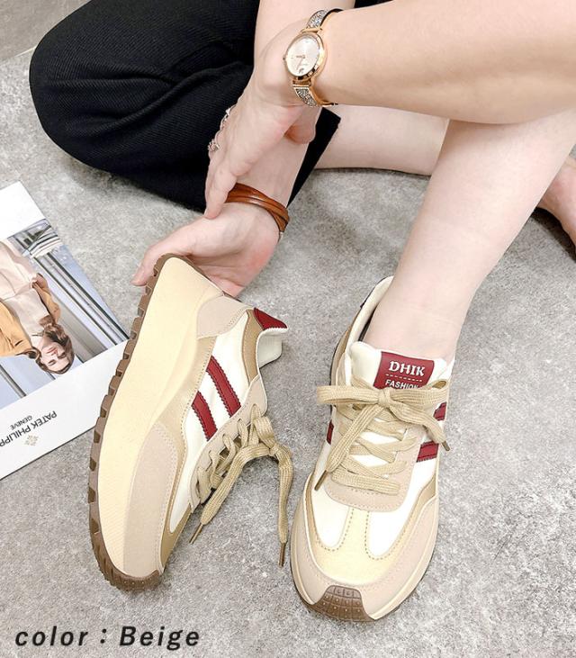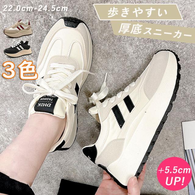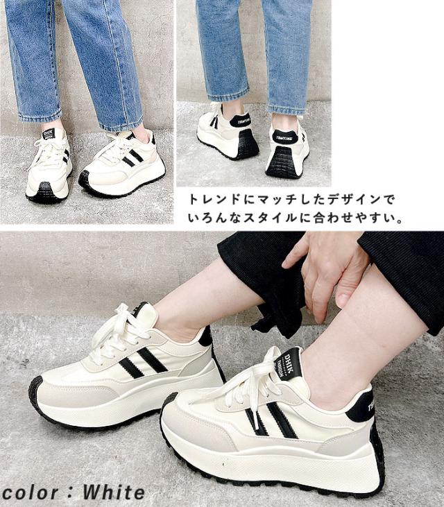 厚底スニーカー ダッドシューズ ライン入り 軽量 歩きやすい 痛くない スポーティ 厚底ソール ラインスニーカー レディース