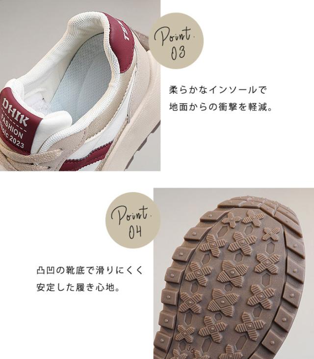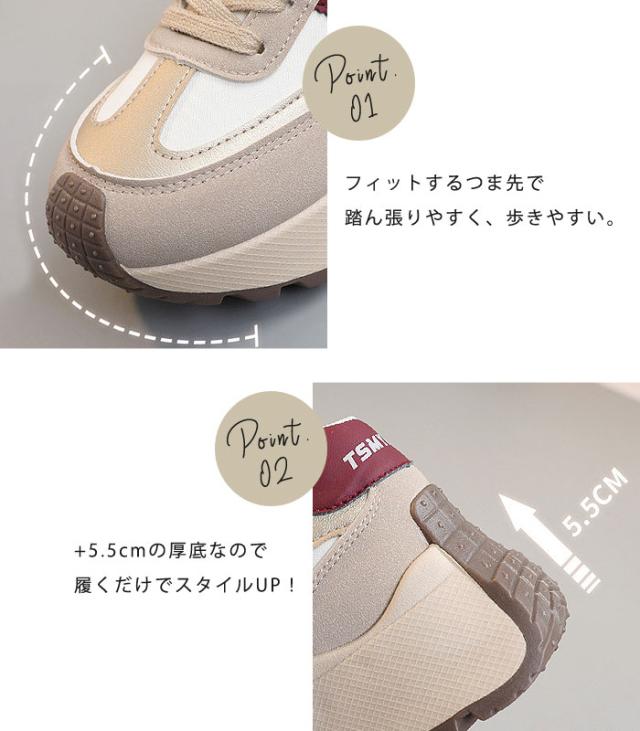 この厚底スニーカーは、女性らしいスポーティさを演出してくれるアイテムです。長時間歩いても疲れにくいので、デイリーや旅行、アウトドアシーンなど幅広いシーンで活躍してくれます。足の疲れを気にせず、自信を持って歩ける一足として、おすすめの商品です。