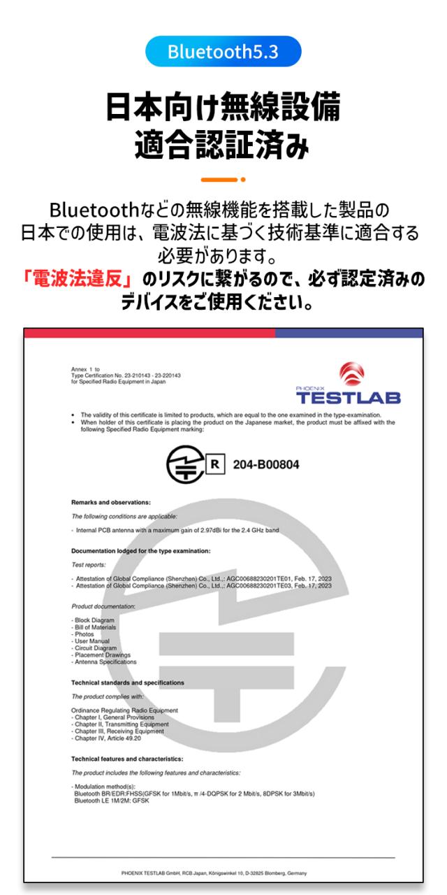 - 通信規格:Bluetooth V5.3 / 5.2 / 5.1 / 5.0 / 4.2LE / 4.0 / 3.0 / 2.1+EDR