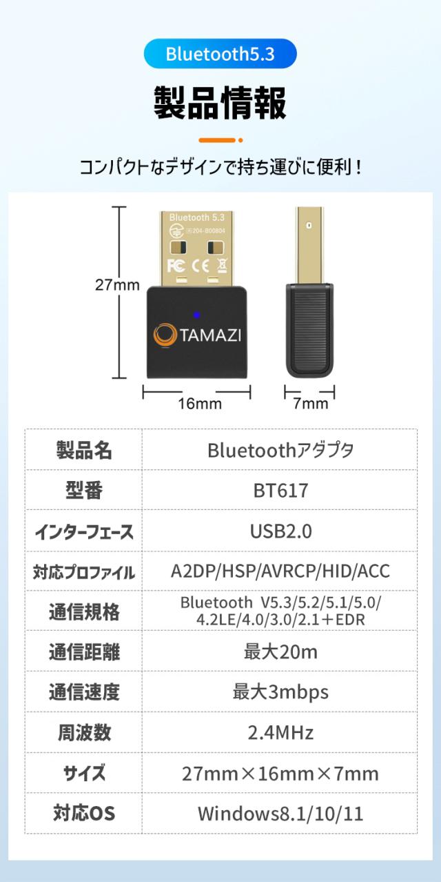- 商品名:Bluetooth5.3 アダプタ