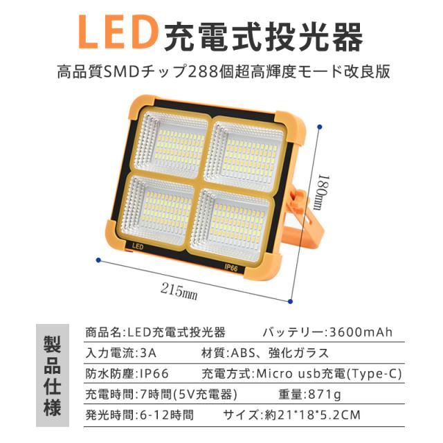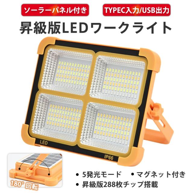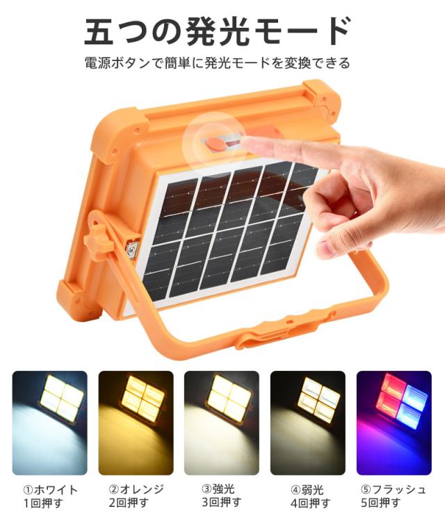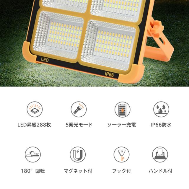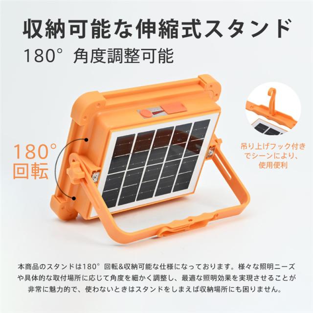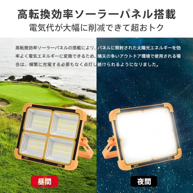 led投光器 ソーラー充電とUSB充電 投光器 強力作業灯 12000LM 3000W 五つモード IP66防水 180°調整 防
