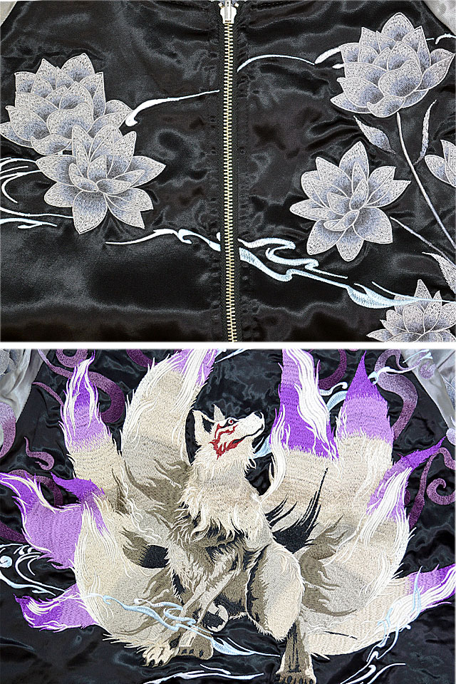 粋 九尾焔リバーシブルスカジャン 絡繰魂 242070 和柄 和風 刺繍 狐 きつね 妖怪 スーベニアジャケット
