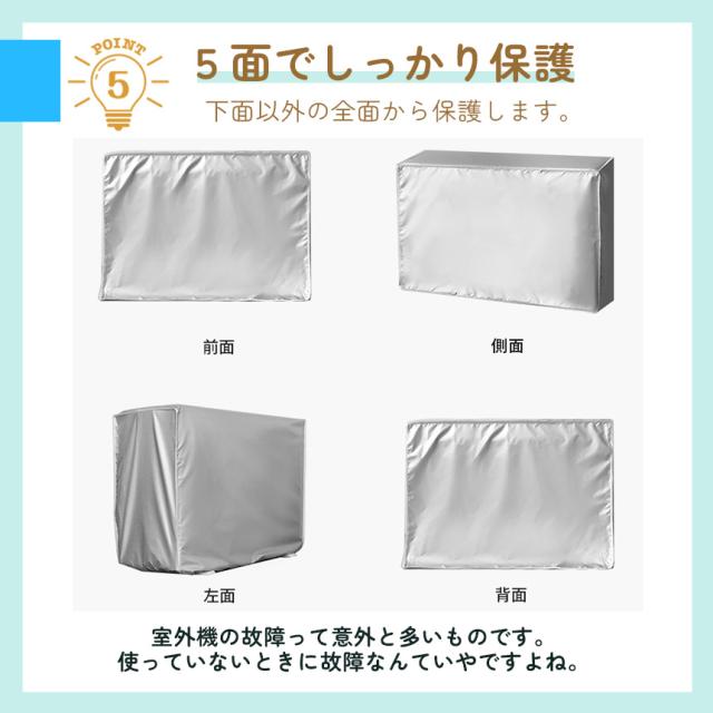 【エアコン室外機を守る】エアコンの室外機、放置していませんか?意外と雨やホコリ、太陽の熱などでダメージを受けて故障も多いんです。せめて使わない時期はエアコンカバーをして保護をしてあげましょう。このエアコンカバーは太陽光・雨・風・雪からエアコン室外機を守ります。降り積もる雪からも守ります。強い風や雨の多い季節、日差しが眩しい季節、雪降る季節、一年通して室外機を守ります。【雨よけ】梅雨の季節には湿度が高まり、エアコンの室外機に損害が発生します。エアコン室外機カバーは雨よけの機能を持ち、エアコンをほとんどん使わない梅雨の季節において、エアコンの室外機を保護し劣化を防ぐことが出来ます。
