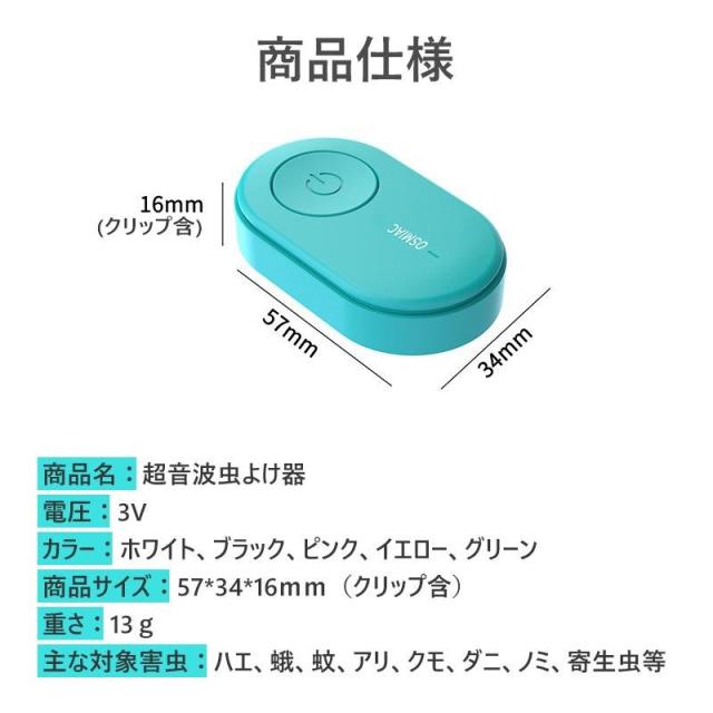 蚊よけ 蚊除け 虫よけ 虫除け 蚊駆除 ダニ駆除 害虫駆除器 超音波 害虫対策 クリップ式 子ども 子供/大人兼用 蚊 ダニ ノミ 薬剤不使用 無毒 静音 軽量 おしゃれ ペット兼用 アウトドア キャンプ 山登り 蚊 アリ ハエ クモなどに対策 臭いや煙なし ゴキブリ対策 害虫退治