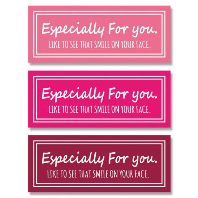 ワックスペーパーや不織布など、通常だと貼るのが困難だった素材への貼付ができる特殊強粘のギフトシールです。ピンク系の3つのカラーのアソートセットです。●84枚入(12枚×7シート、各色28枚)【印字内容】Especially For You/LIKE TO SEE THAT SMILE ON YOUR FACE.。