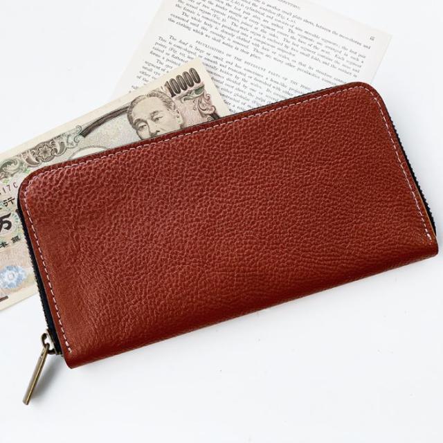 ラウンドファスナーでマチが付いているので、大きく開き中身の取り出しもスムーズに行なえます。