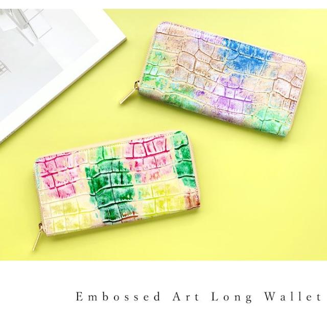 財布 長財布 メンズ レディース ラウンド長財布 ラウンド財布 長サイフ カード収納 本革 型押し アート ラウンドファスナー サイフ さいふ ウォレット 革 レザー