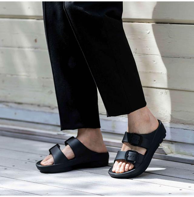 | 特徴的なベルトとベルトの間に少し高さを付けることでより包み込まれるような履き心地に進化し、ソールの厚さもグレードアップ。大きなWバックルは、甲の高さに合わせフィット感を調節可能。ファッション性も抜群で、足元のアクセントとして活躍します。高いクッション性とすぐれたホールド感、トレンド感を備えた厚底タイプで、登場以来、メンズ・ウイメンズ両方で人気のモデルです。 |