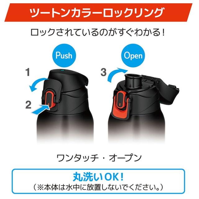 ワンタッチで簡単オープン。ツートンカラーのロックリングでロックされているのがわかりやすい。
