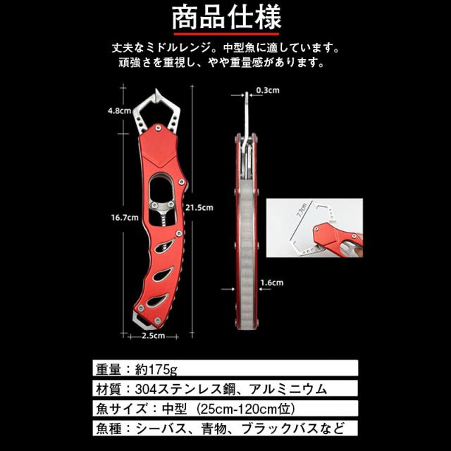 【耐腐食性に優れたアルミ製 高い強度のミドルフィッシュグリップ】