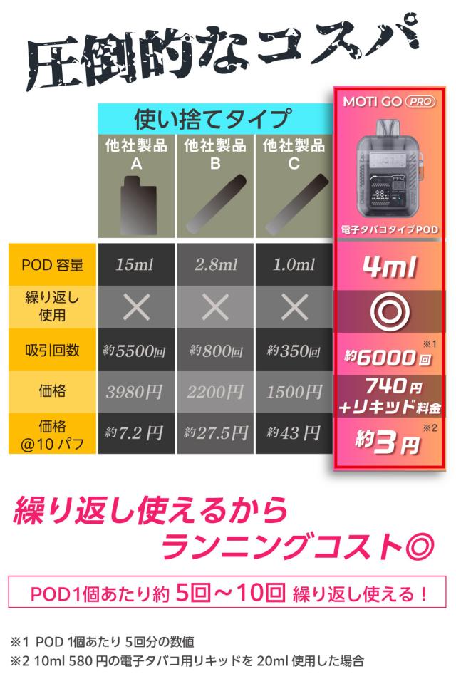 ⇒ Moti Go Pro (モティ ゴープロ) の交換用 空カートリッジ4個セットはコチラ