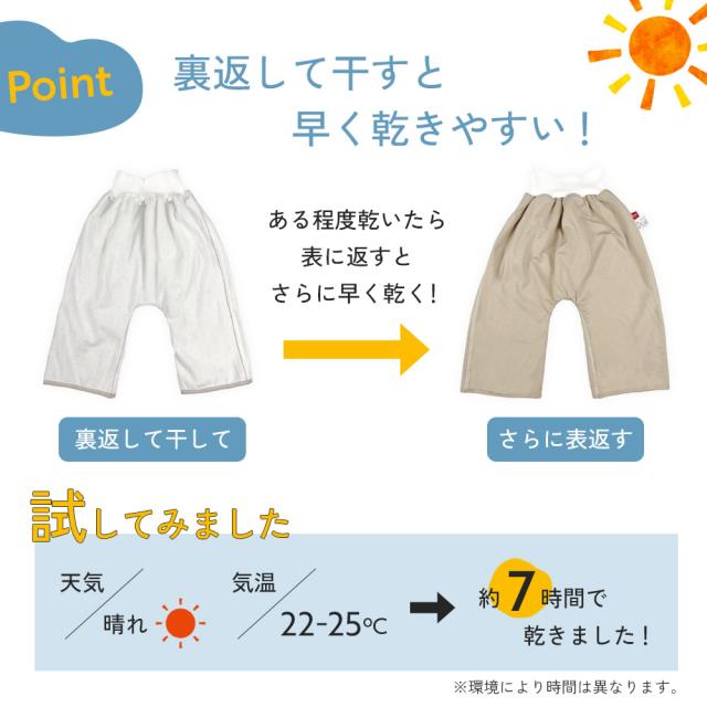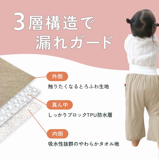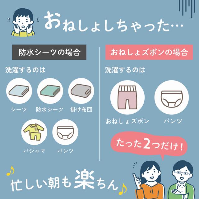 - 子供のおむつ卒業のため、主に夜用おねしょ対策に購入しました。ズボン自体は濡れた感じはしますが、布団がビショビショにならず助かります。おねしょをするとパジャマや布団が汚れるだけでなく、濡れたところが冷た...