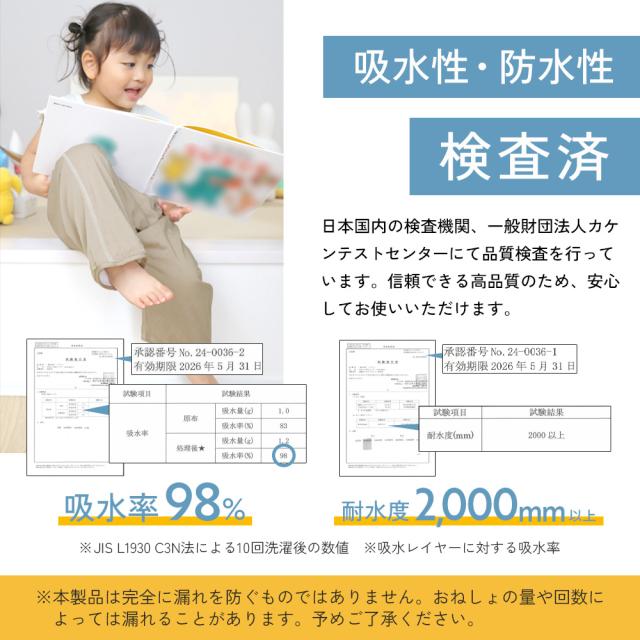 ・本製品は完全に漏れを防ぐものではありません。おねしょの量や回数によっては漏れることがあります。予めご了承ください。