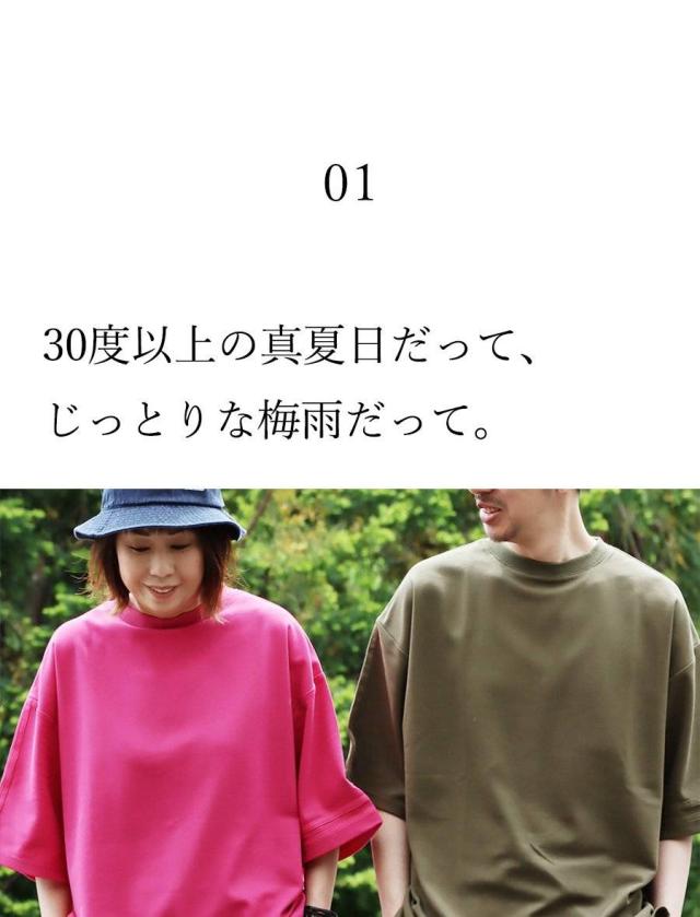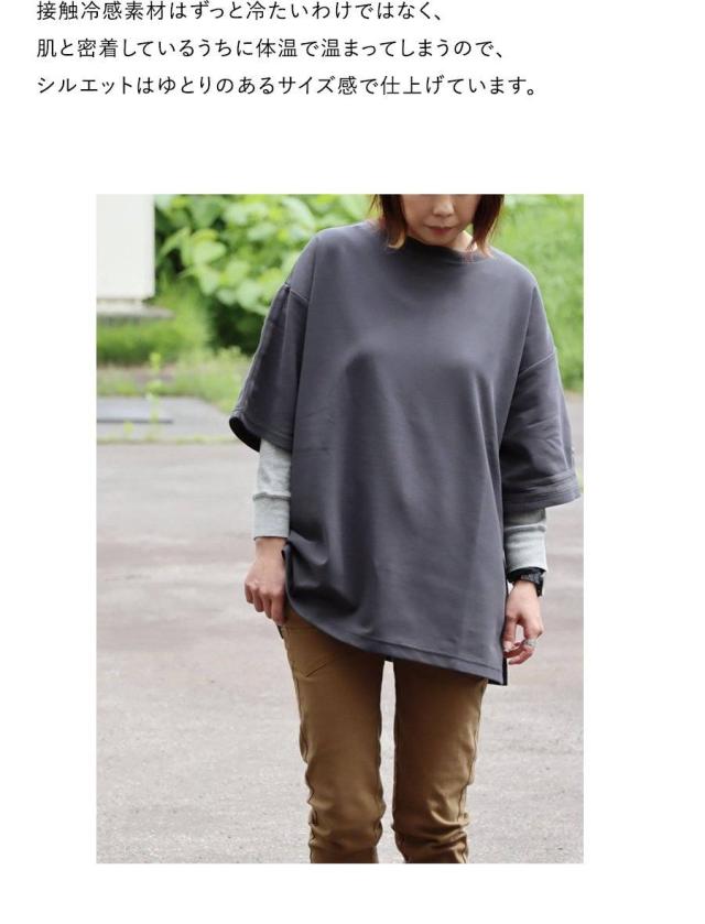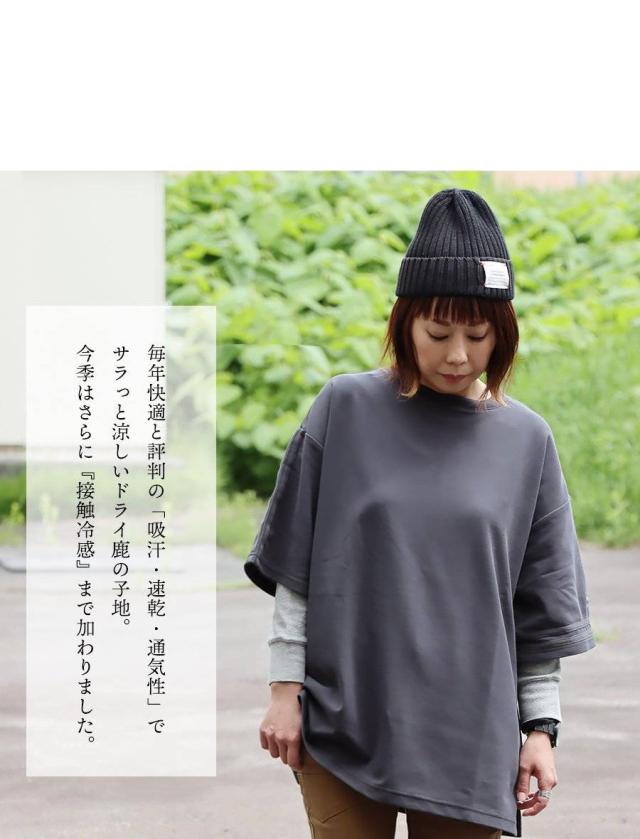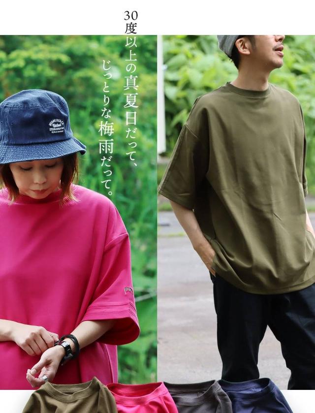 涼しい tシャツ メンズ レディース 五分袖 夏 鹿の子 冷感加工 吸汗 速乾 ビッグシルエット 着痩せ ワイド 二の腕 お尻 体系 カバー 刺繍 袖ライン 生地 大人 カジュアル パティ