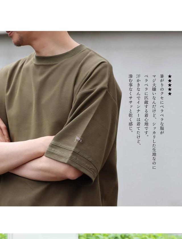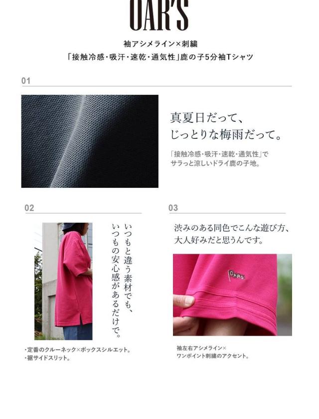 【メール便50】 涼しい tシャツ メンズ レディース 五分袖 夏 鹿の子 冷感加工 吸汗 速乾 ビッグシルエット 着痩せ ワイド 二の腕 お尻 体系 カバー 刺繍 袖ライン 生地 大人 カジュアル パティ OAR’S オールズ